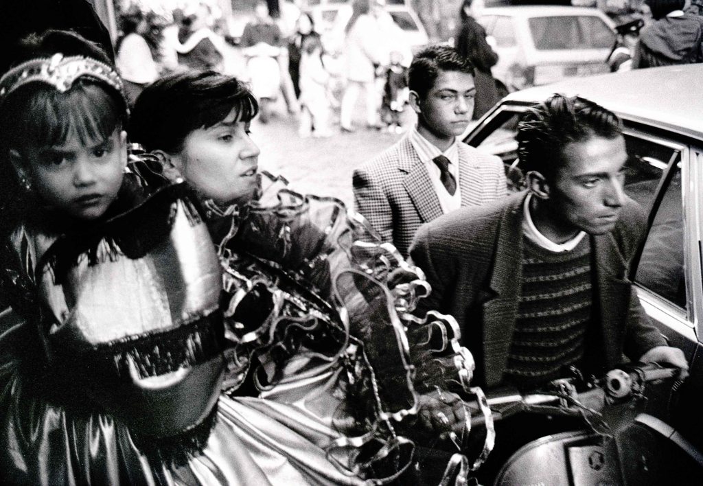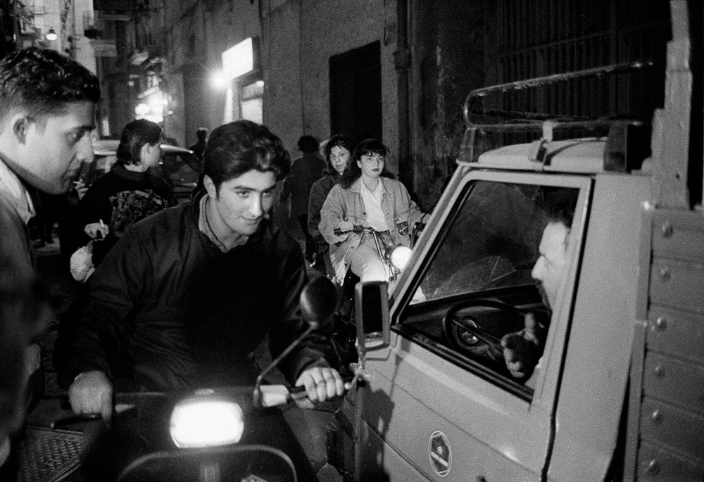 L’exposition Napoli, photographies Lin Delpierre, présentée par la galerie Ira Leonis dans le cadre des Rencontres d’Arles 2023, propose un ensemble de 50 photographies argentiques issues d’un conséquent travail fait par l’artiste à Naples en 1991, durant les fêtes de Pâques. Cette série illustre très précisement la singulière écriture photographique de l’artiste : un regard tout à la fois généreux et frontal, saisissant le moment de la rencontre avec la ville et ceux qui la vivent à la distance d’un bras. Là, le photographe marque desa prise de vue un geste, un regard, un mouvement, pour en créer autant d’événements qui nous laissent le loisir d’y plonger et de nous inventer nos propres histoires.